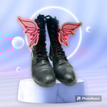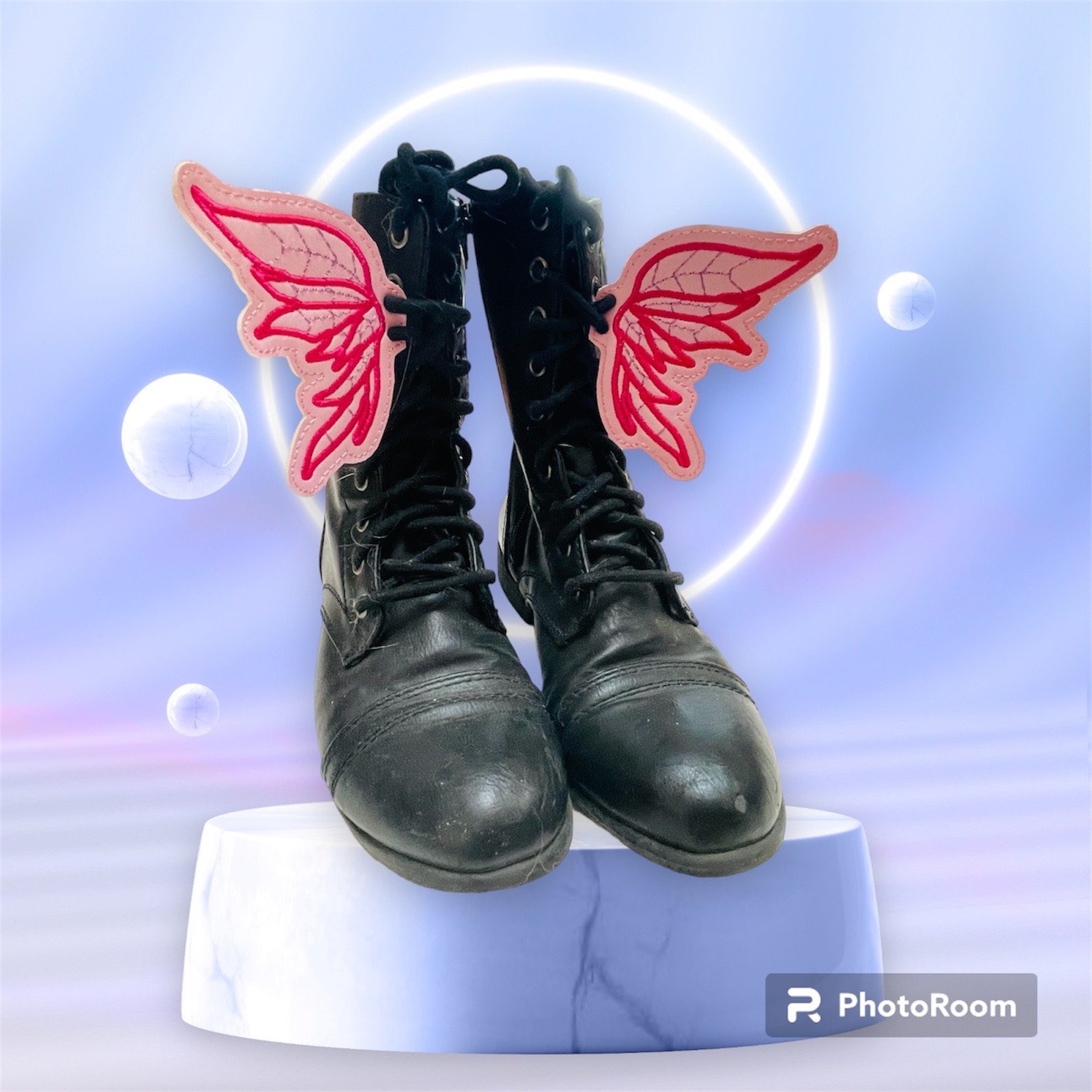 Adding shoe wings to your shoes or boots is an easy way to put some whimsy in your wardrobe. I wear mine with boots and, everywhere I go, people always comment on them. This item is made from faux leather and metal grommets.