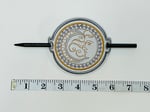 This hair bun cover features a simple design with a geometric border. It's a beautiful accessory to keep your hair up on hot summer days or adds a touch of elegance to your outfit for a night on the town. Item is made from faux leather and comes with a hair stick.